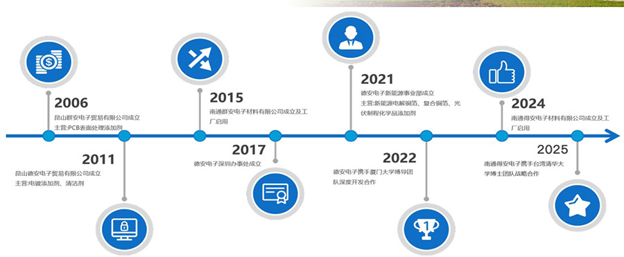 南通得安电子材料有限公司(昆山德安电子贸易有限公司)创立于2011年,专注电子化学品领域创新研发与生产,构建集研发、智造、销售、技术服务于一体的全产业链体系。公司携手台湾清华大学博士团队深度合作,以尖端科技驱动高性能电子化学品开发,产品涵盖半导体、新能源等前沿领域,以卓越品质赋能全球电子产业链升级,矢志成为行业技术革新的领航者。创新驱动,持续赋能未来。